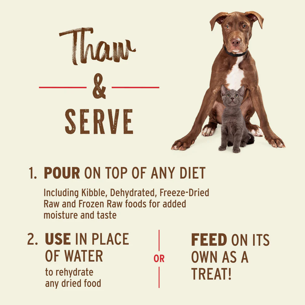 A hydrating, wholesome addition to any diet—plus beneficial nutrients to support joint health, digestion, and liver health. Suitable for dogs or cats. Bone Broth is available in 20oz. easy-pour resealable pouches.