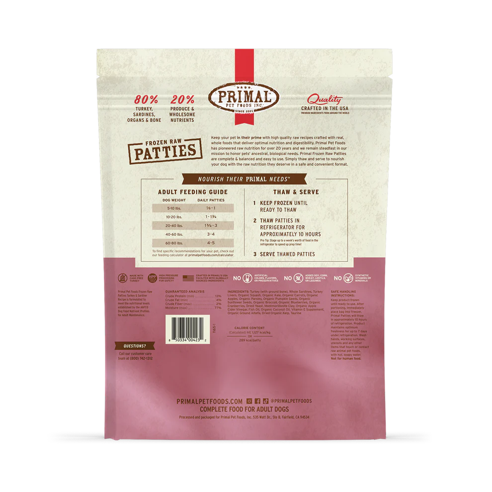 Buy Primal Frozen Turkey & Sardine Nuggets from TheHungryPuppy.com with Free* Local NJ Delivery to your front door at better prices than other online retailers. Not only do we carry Primal Frozen Turkey & Sardine Nuggets but find other Great Products, Dog, Cat, Small Animal, Livestock, Farm Animal Food and Supplies.